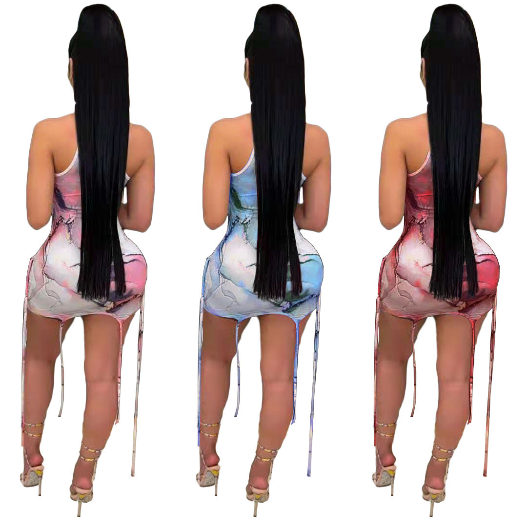 New Casual Personality Rope Decoration Printed Dress