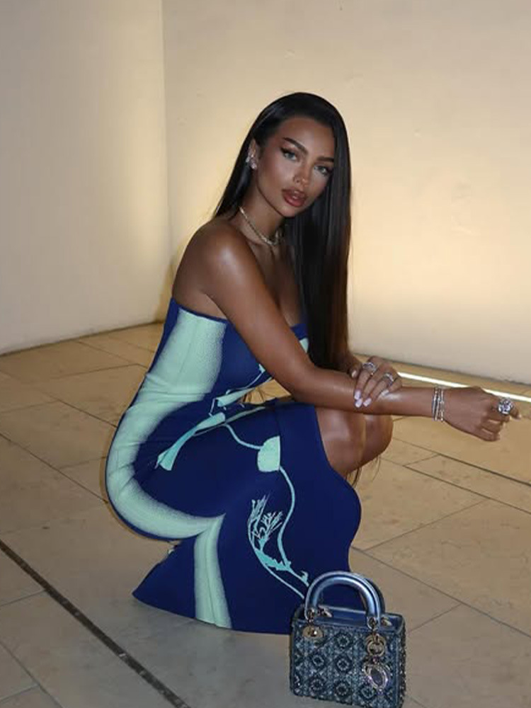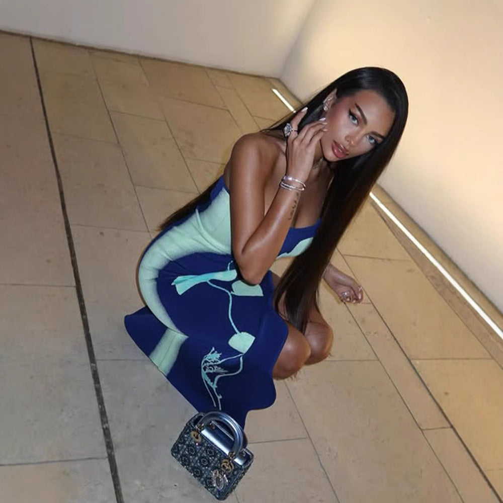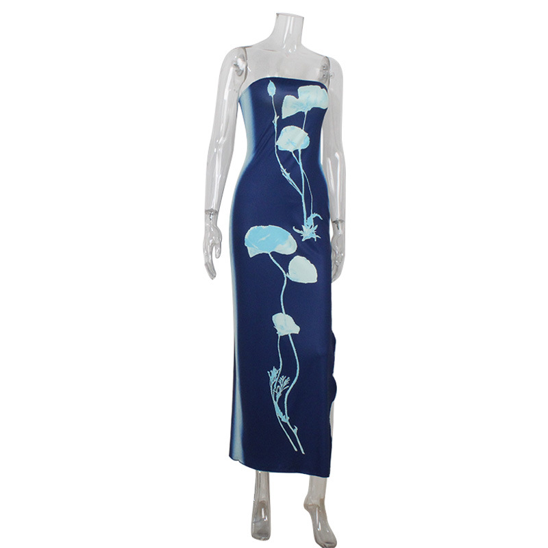 Women's Fashionable Printed Bodycon Slit Slip Dress