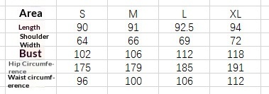 Sizes: S, M, L, XL, XXL