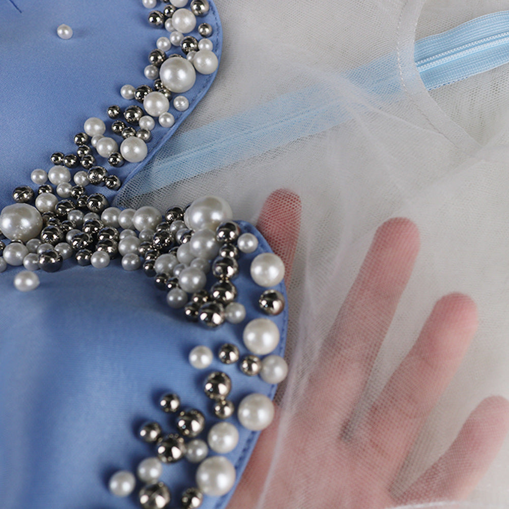See-Through Mesh And Beaded Ruffles Women's Dress