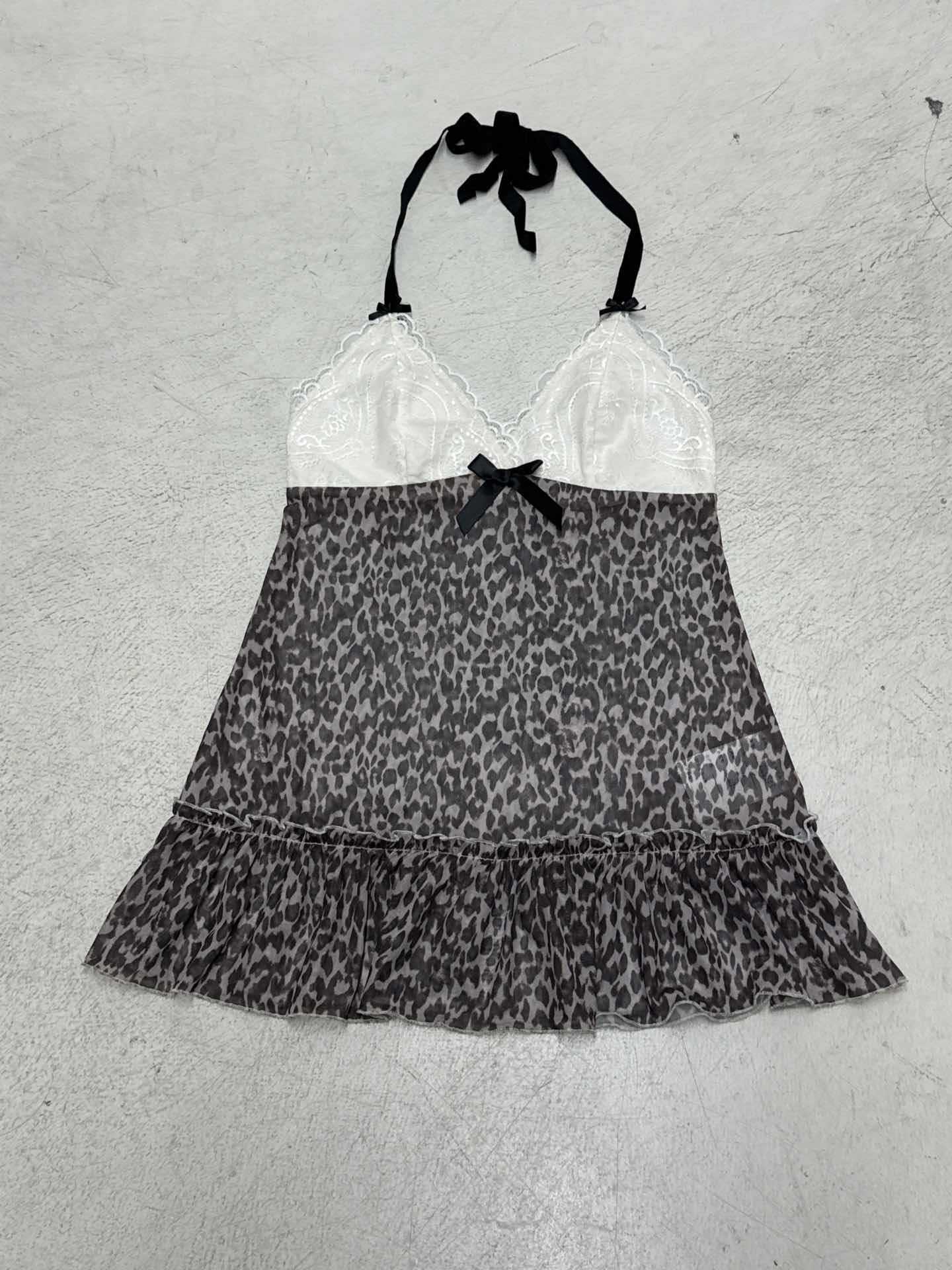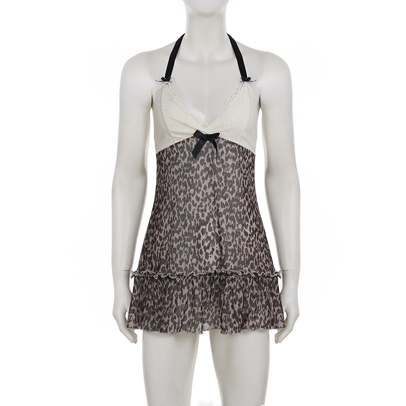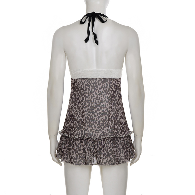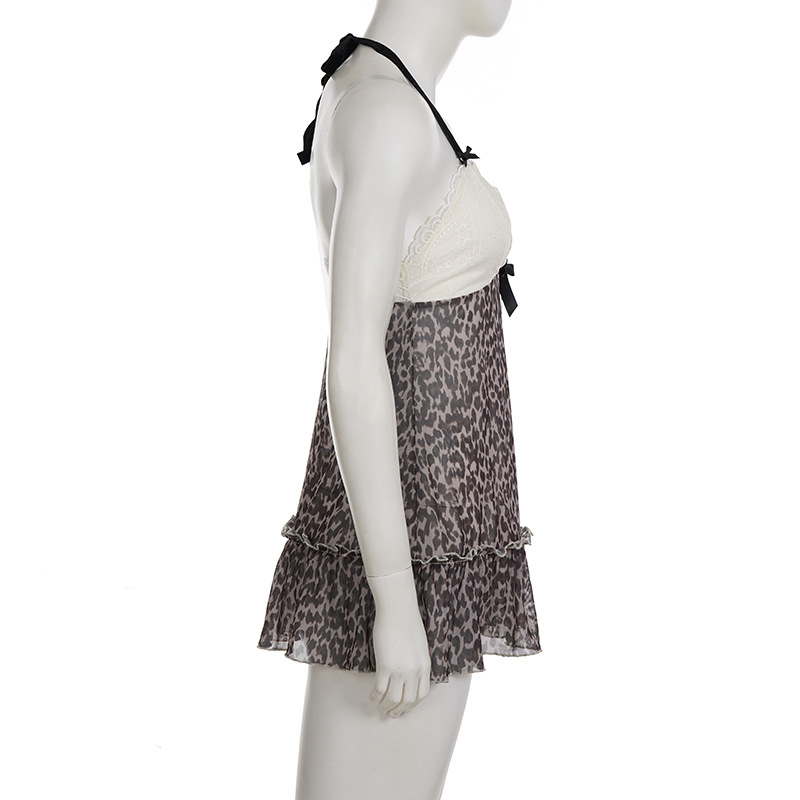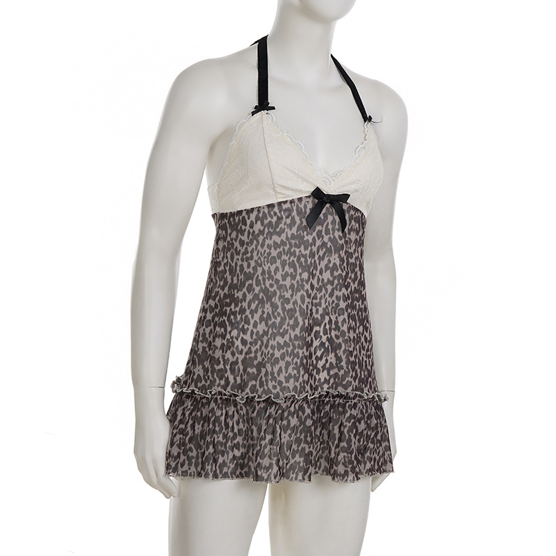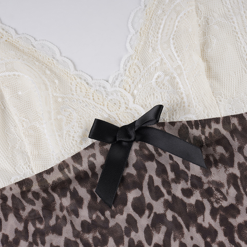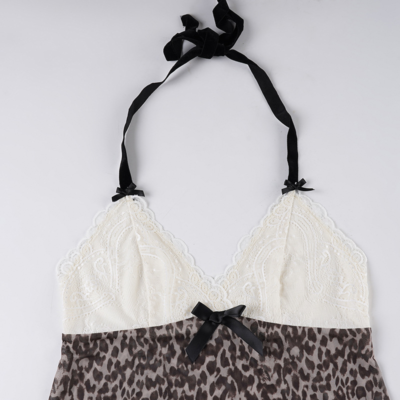 Sweet Leopard-Print Lace-Patchwork Demure A-Line Camisole