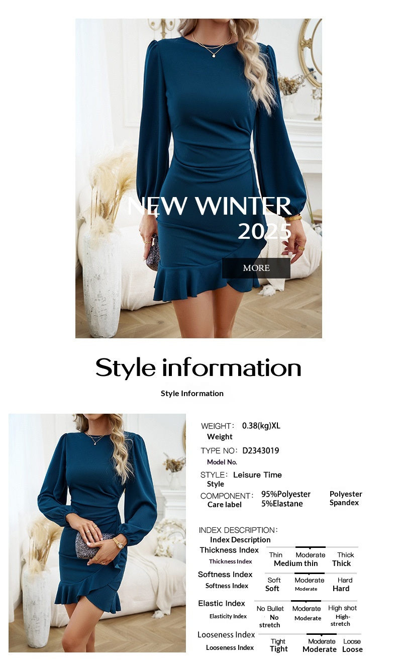 Elegant And Sophisticated Solid-Color Long-Sleeve Sheath Dress For Commuting And Everyday Wear