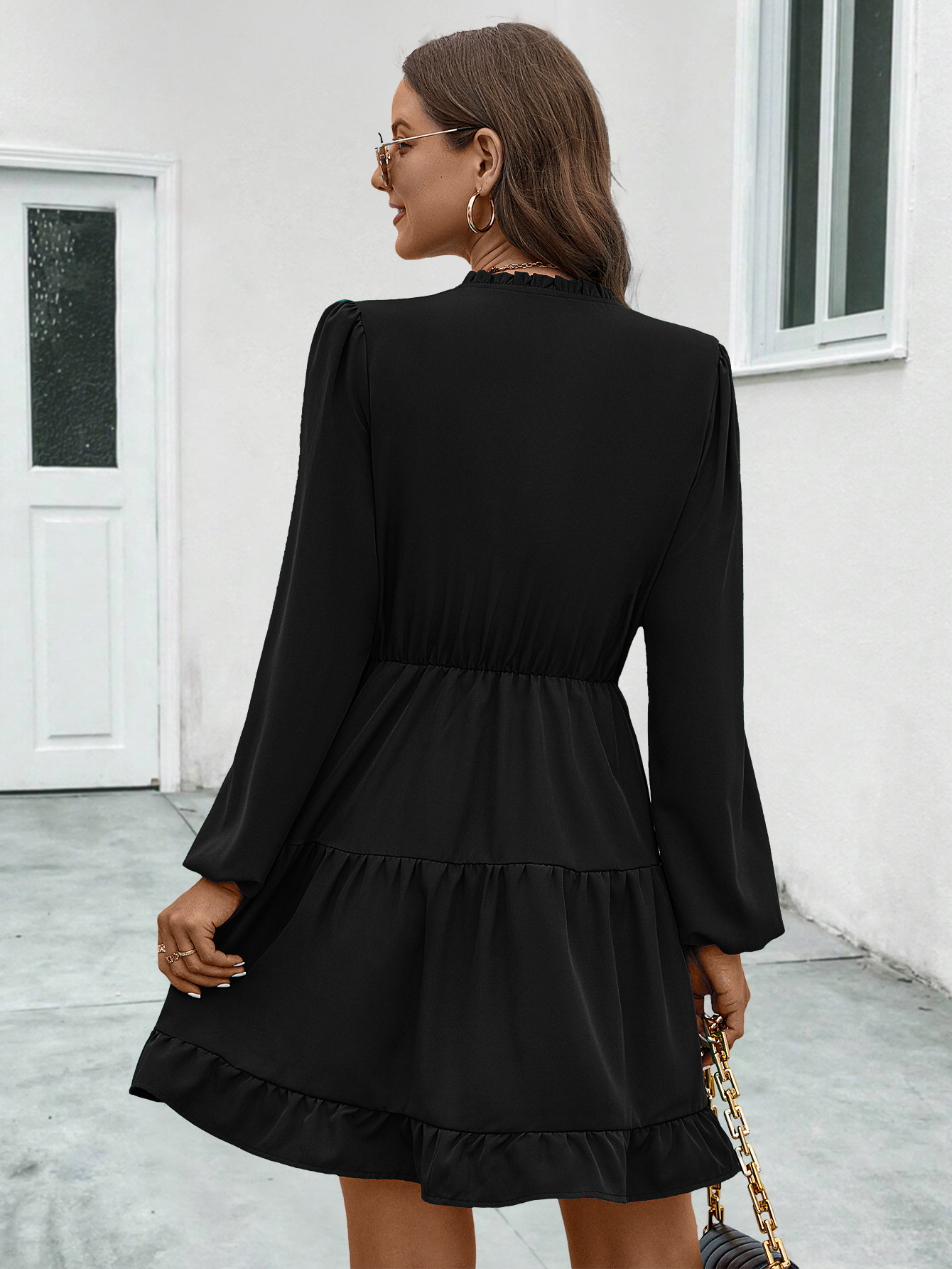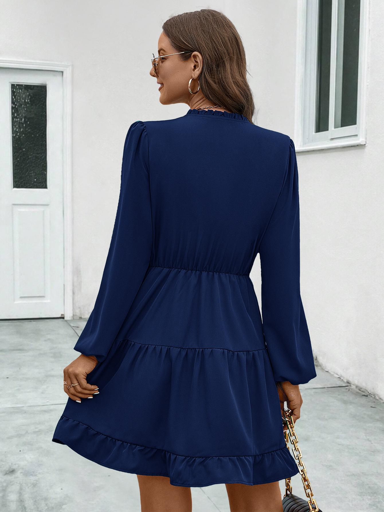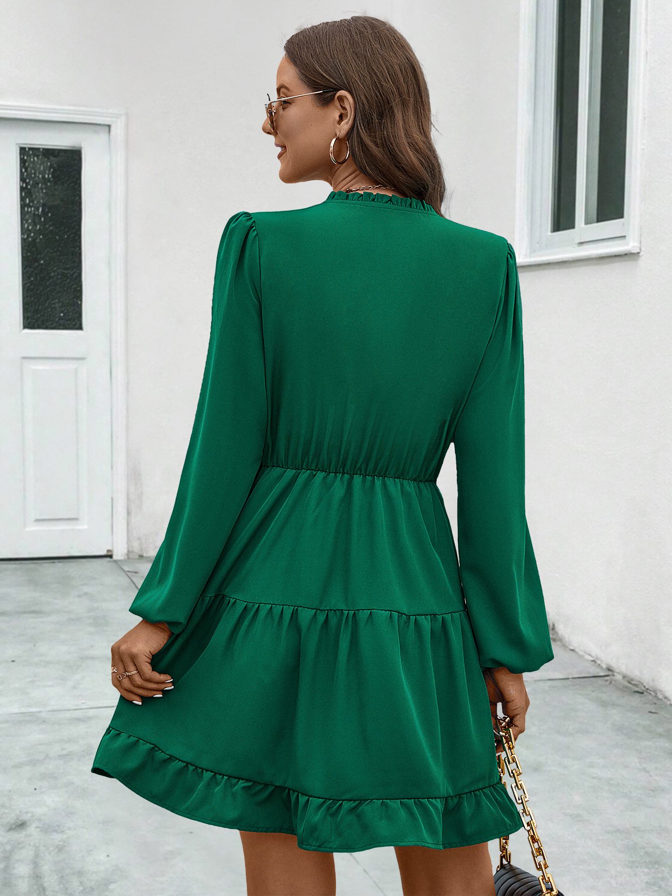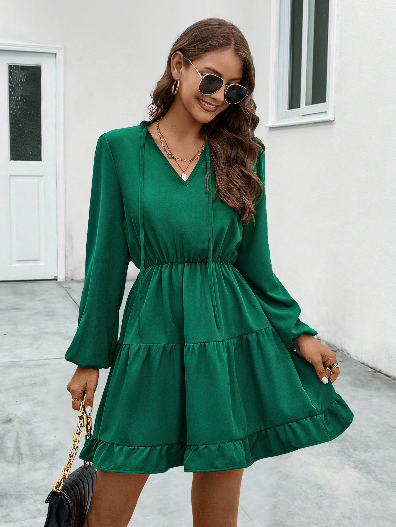 2025 FallWinter New Women's V-neck Lace-up Long-sleeve Dress