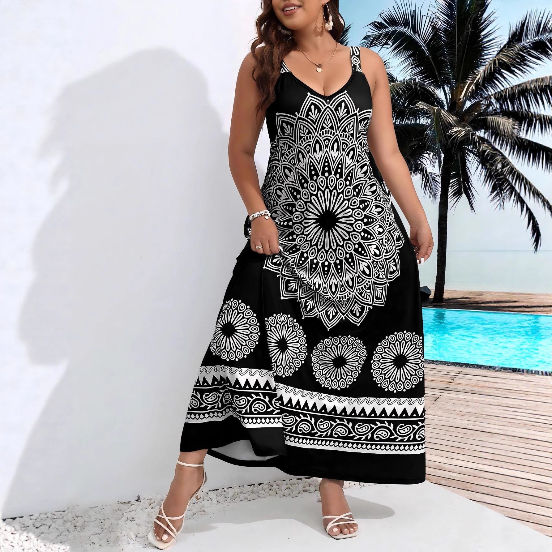 Bohemian Style Beach Floral Print Strapless Loose Dress