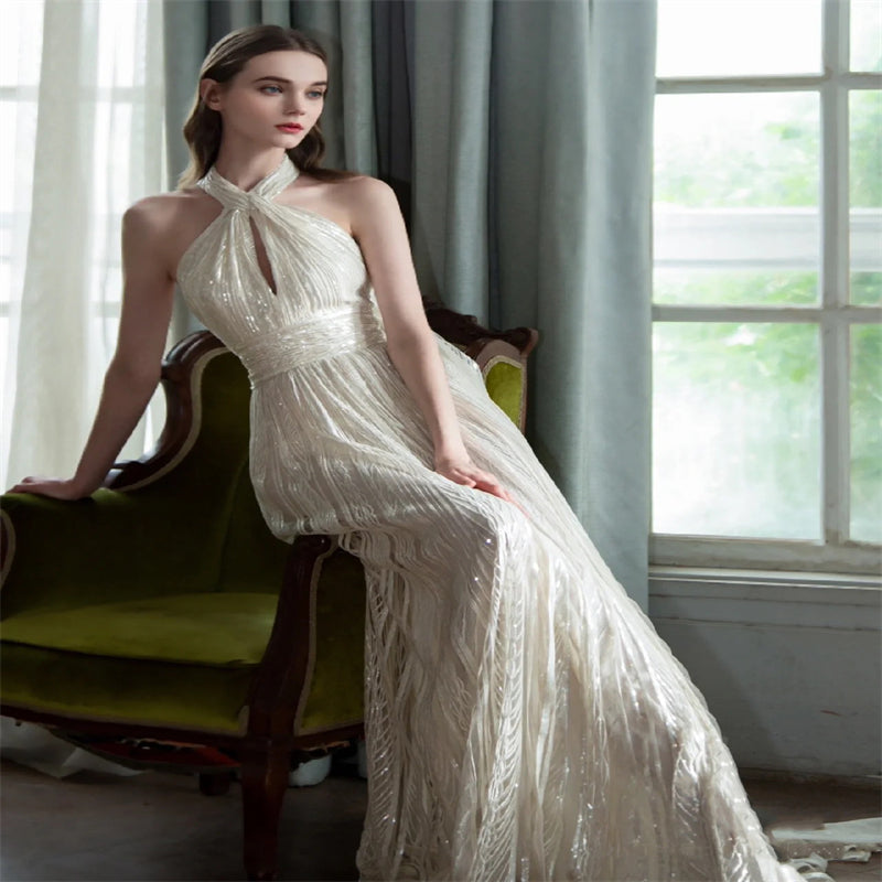 Champagne Color Host Starry Sky Toast Clothing Halter Model Catwalk Show