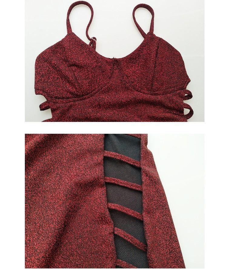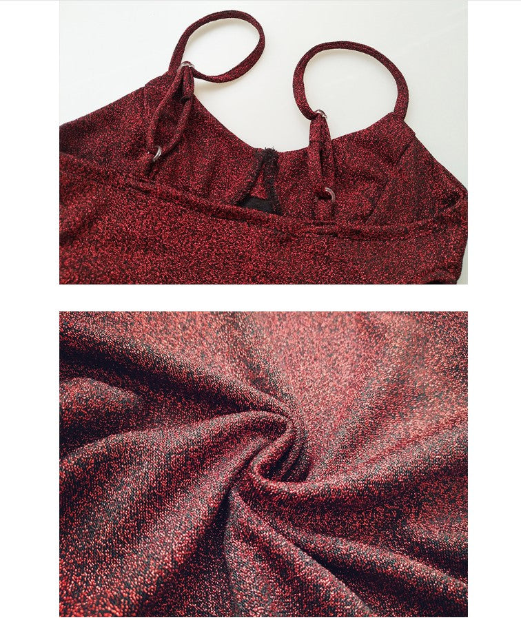 European sexy V-neck strap bandage gold silk dress