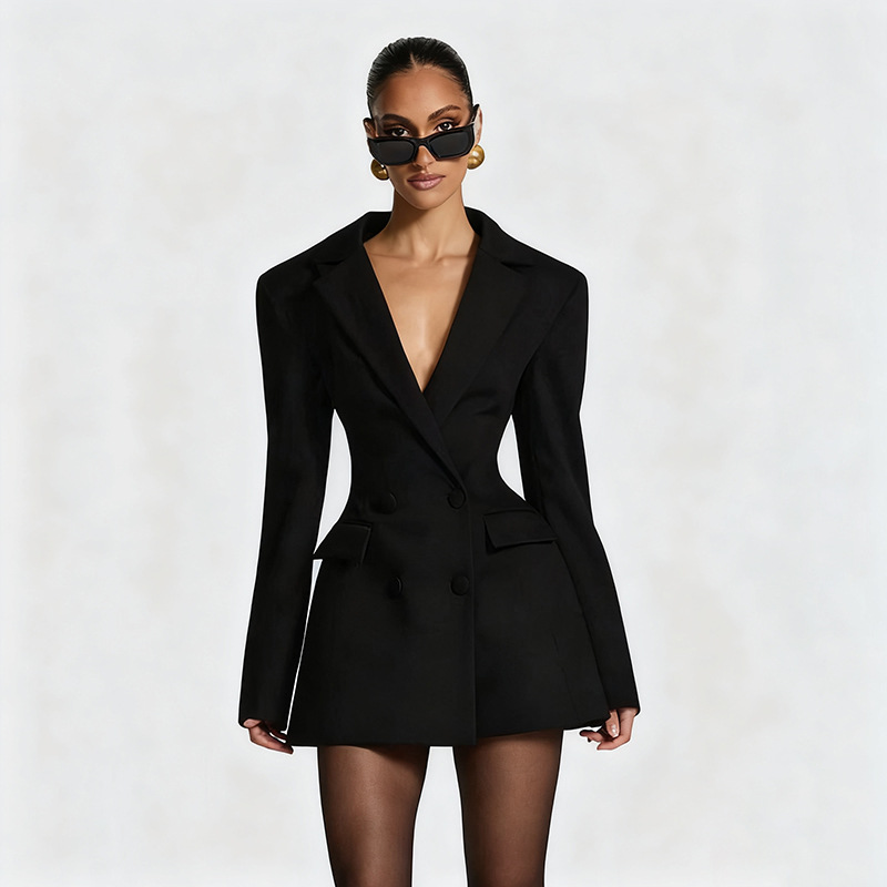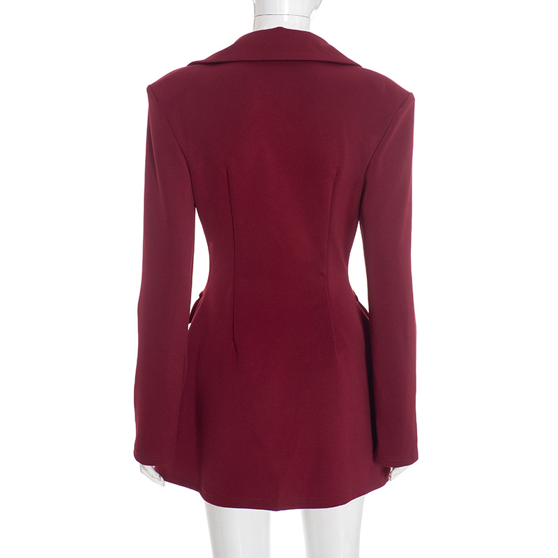New-style Casual Slim-fit Suit Long-sleeve Bud-shaped Faux-pocket Dress