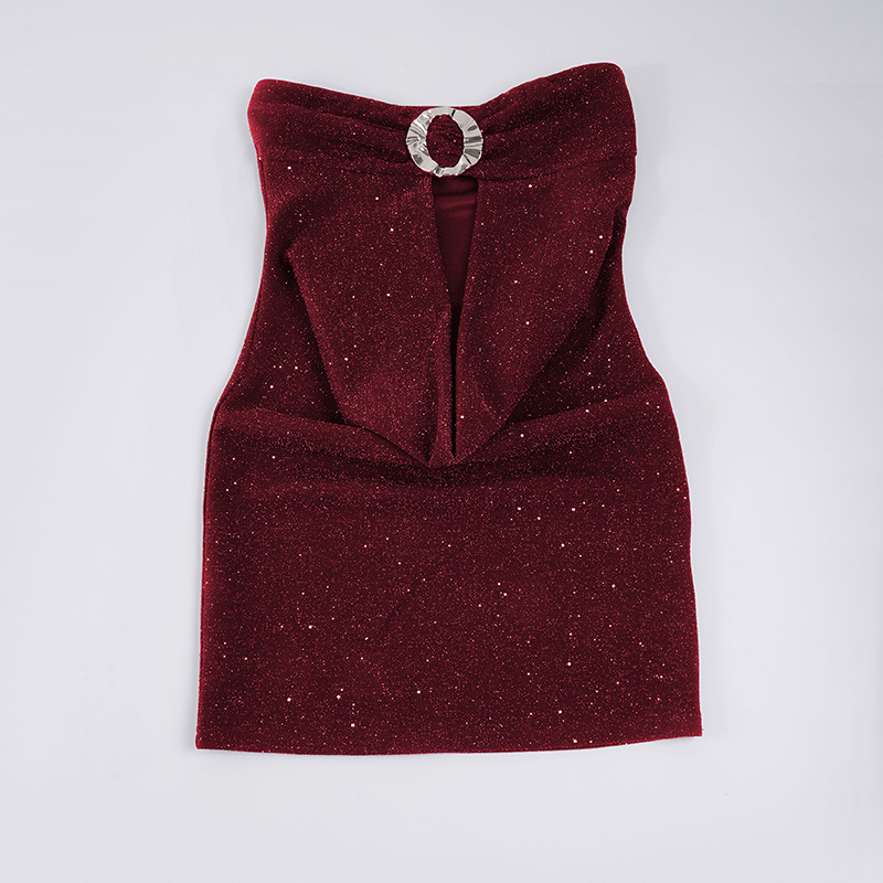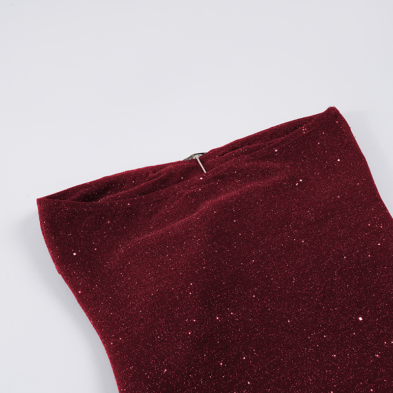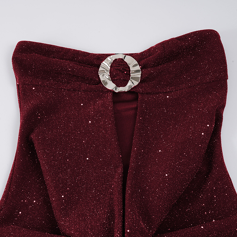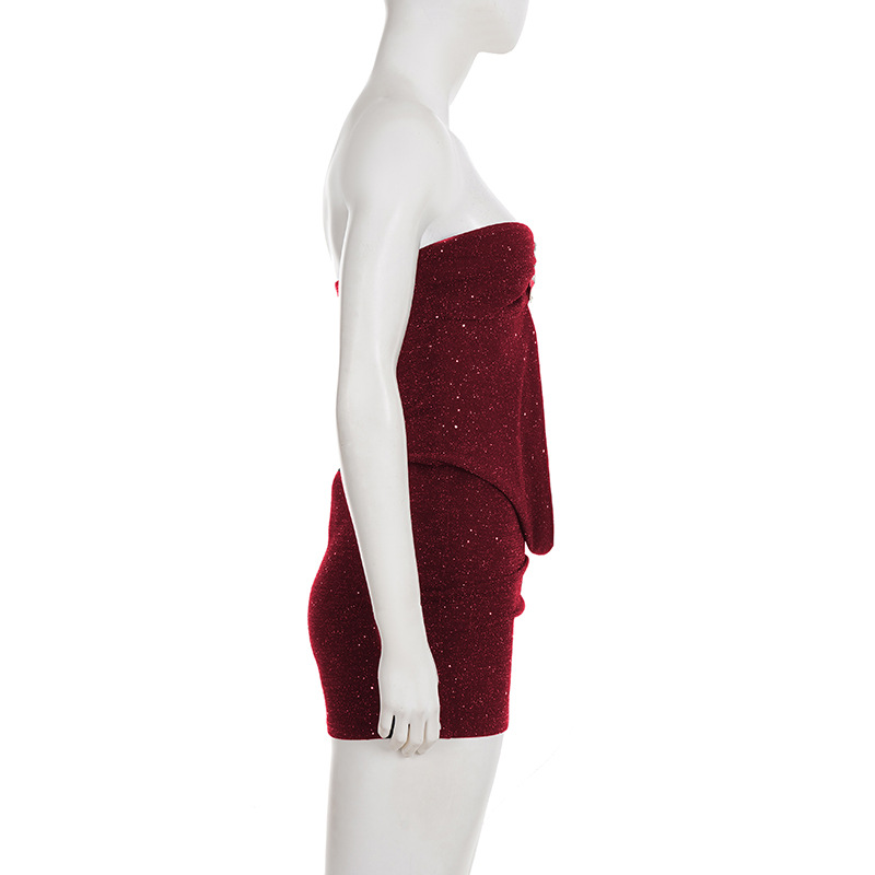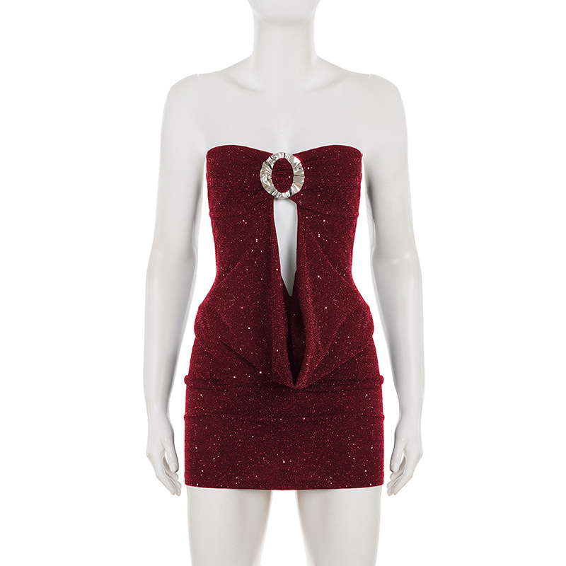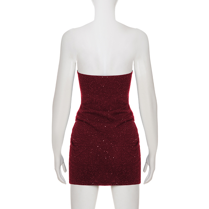 Sexy Sequined Tube Top Hollow-out Pleated Elegant Dress
