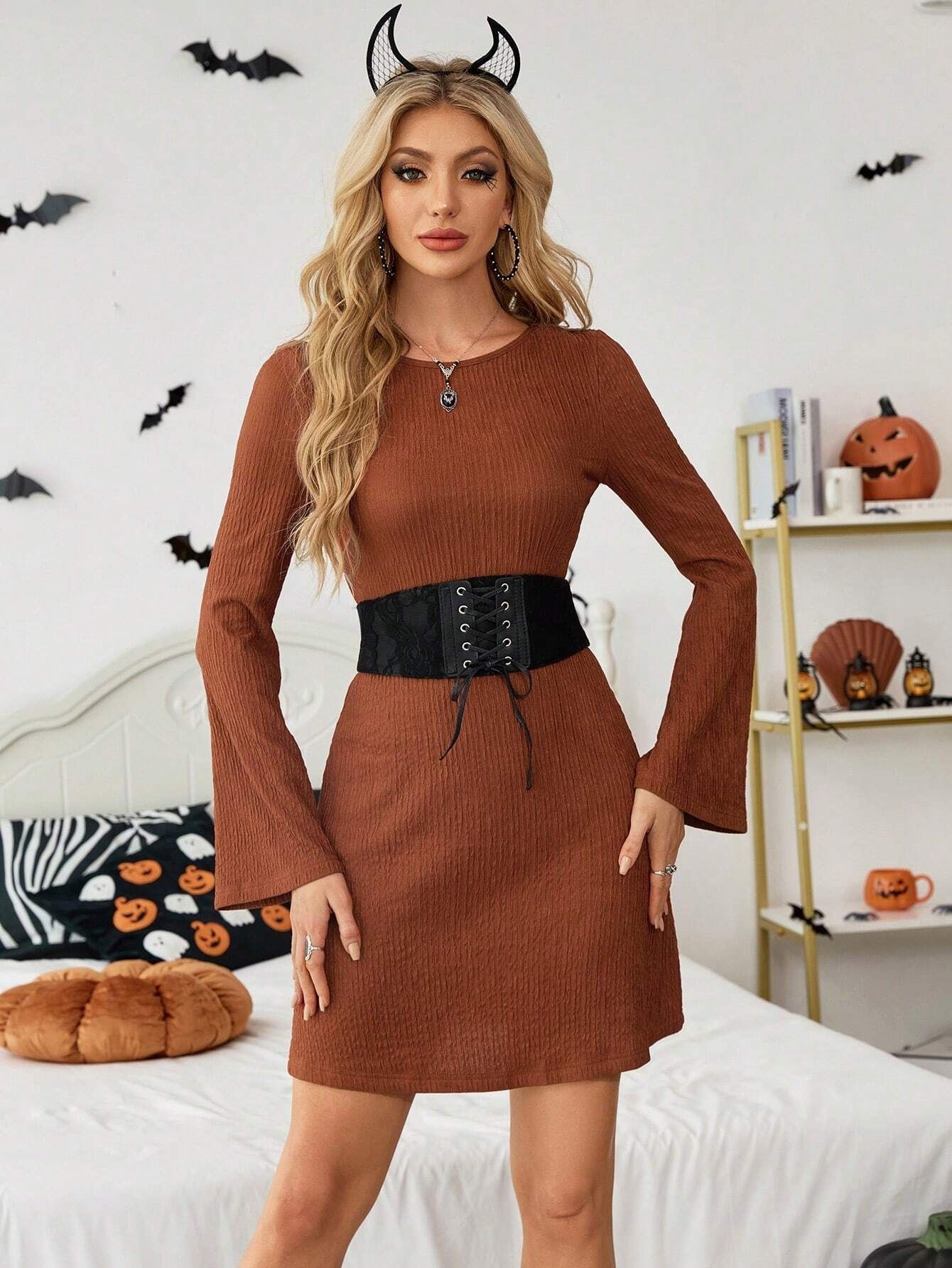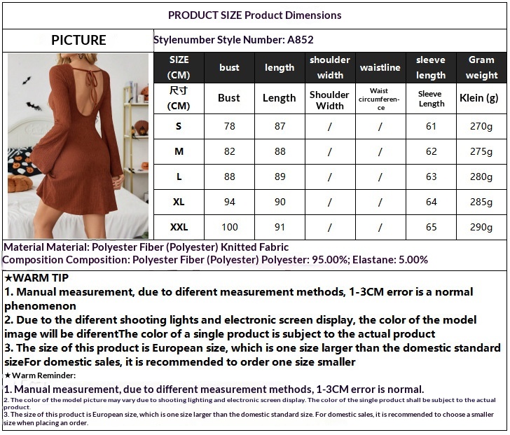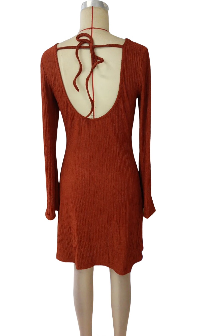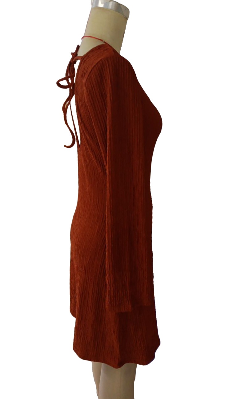 Women's Fashion Textured Backless Bowtie Flared Sleeve Dress