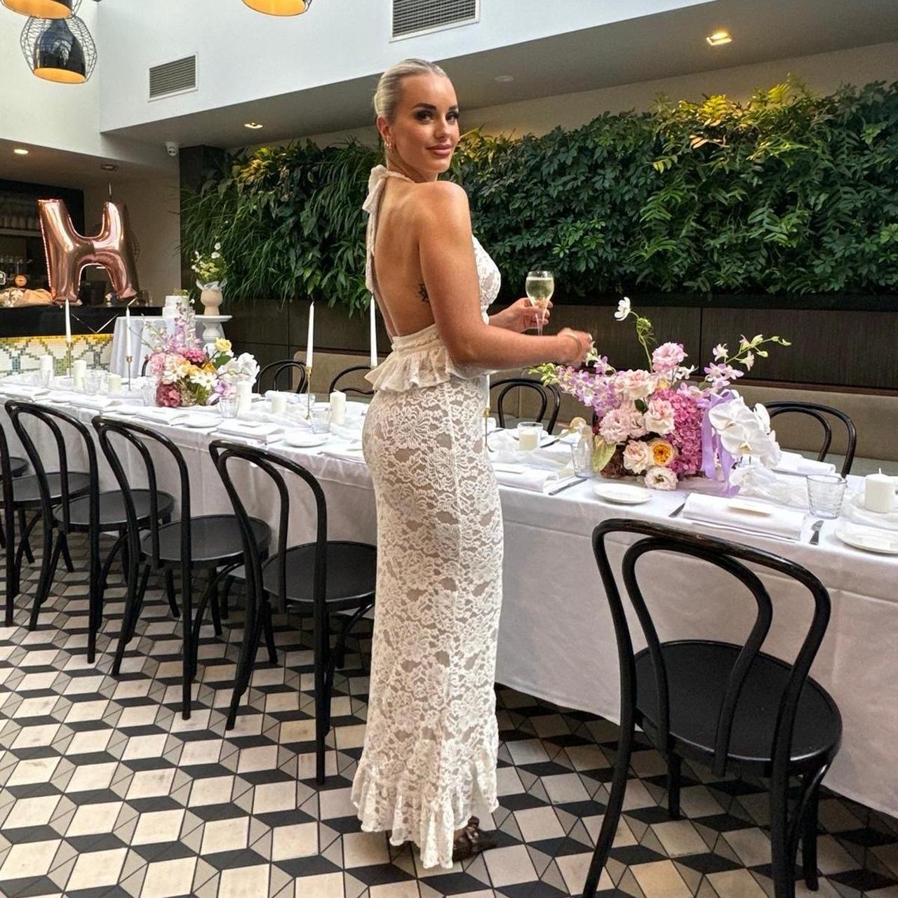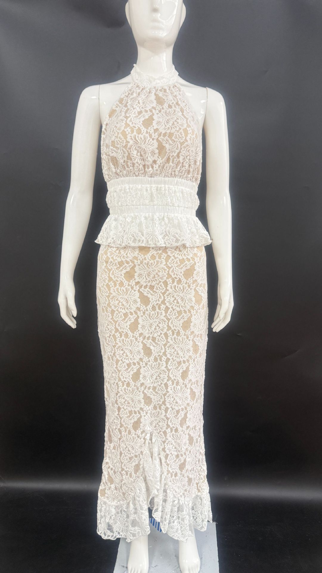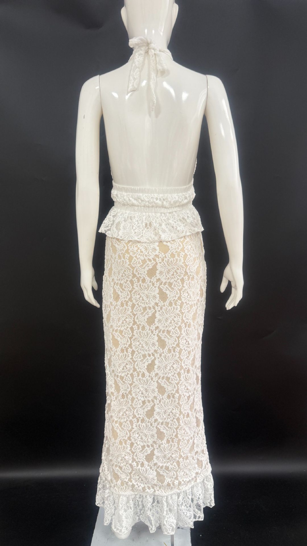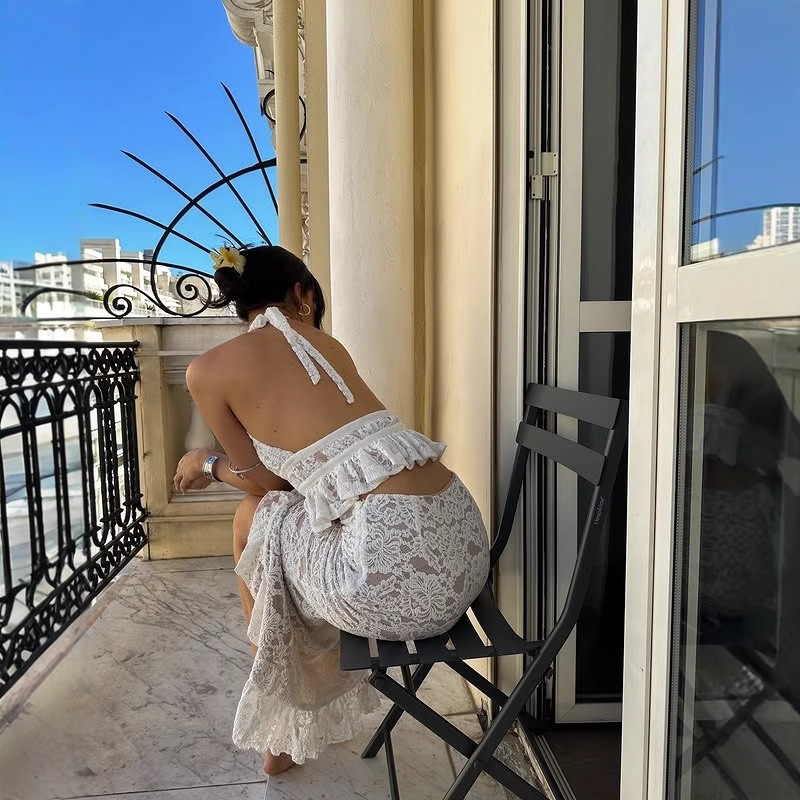 Women's New Sexy Backless Irregular Top With Lace And European-American Skirt Set