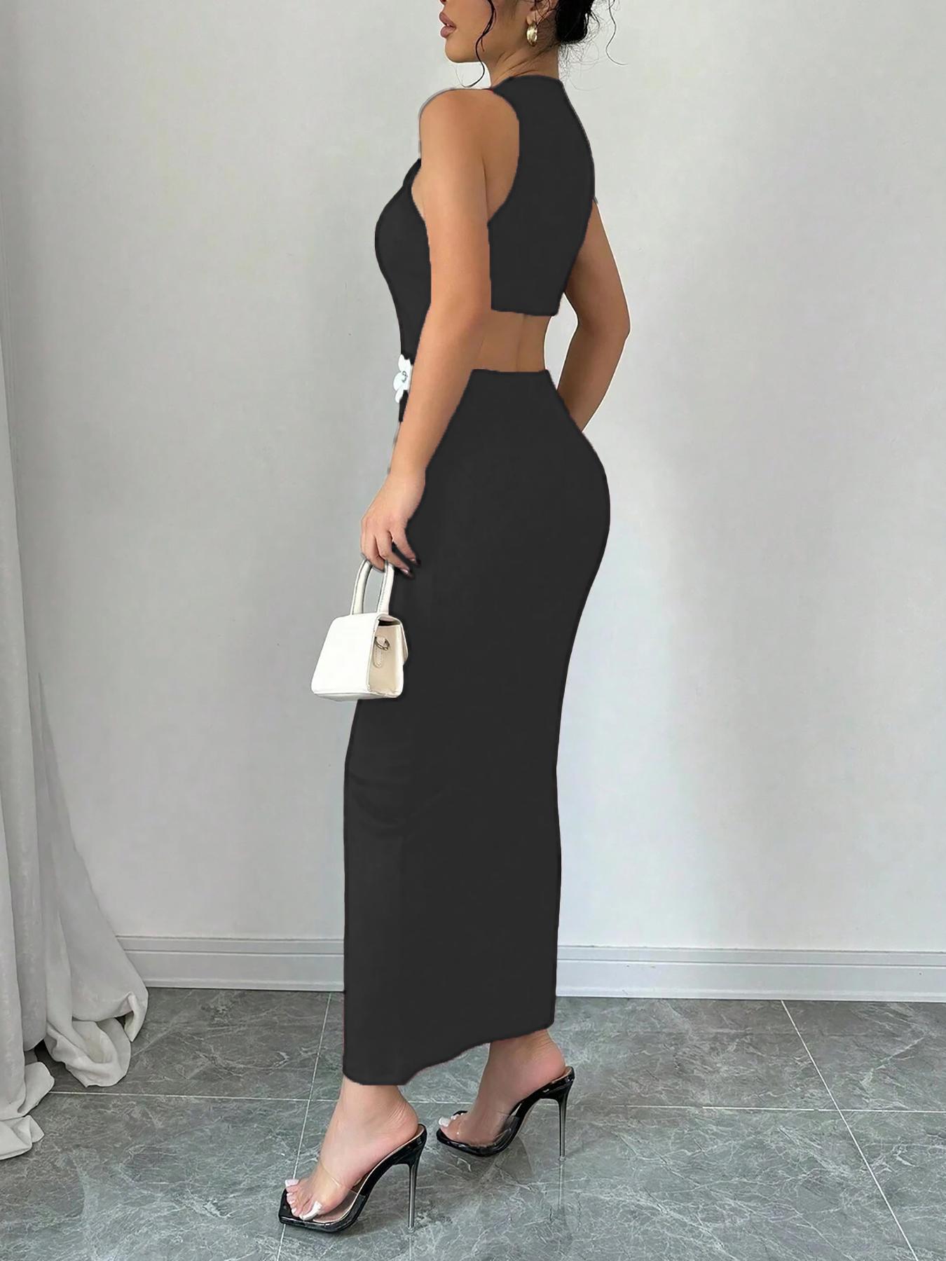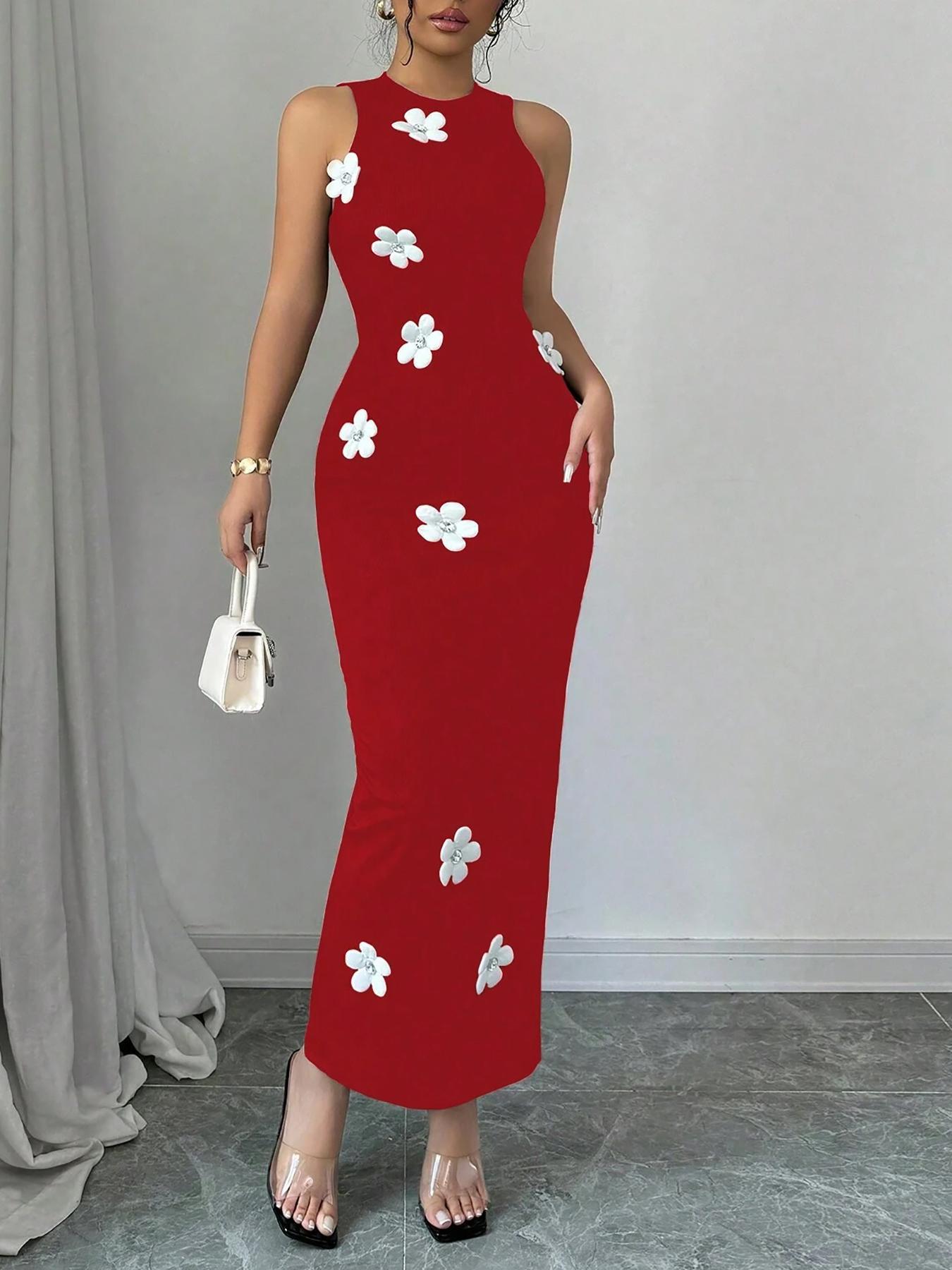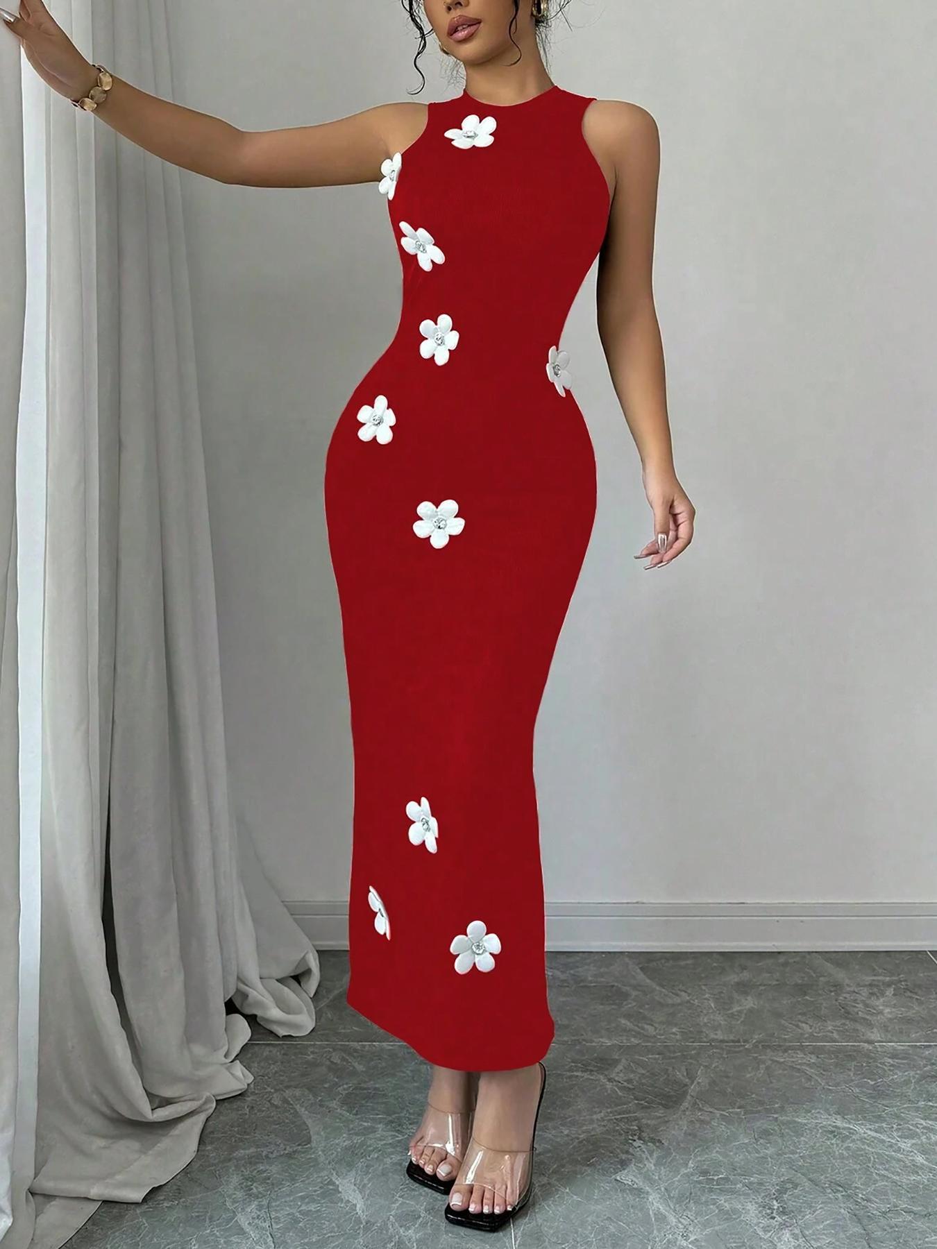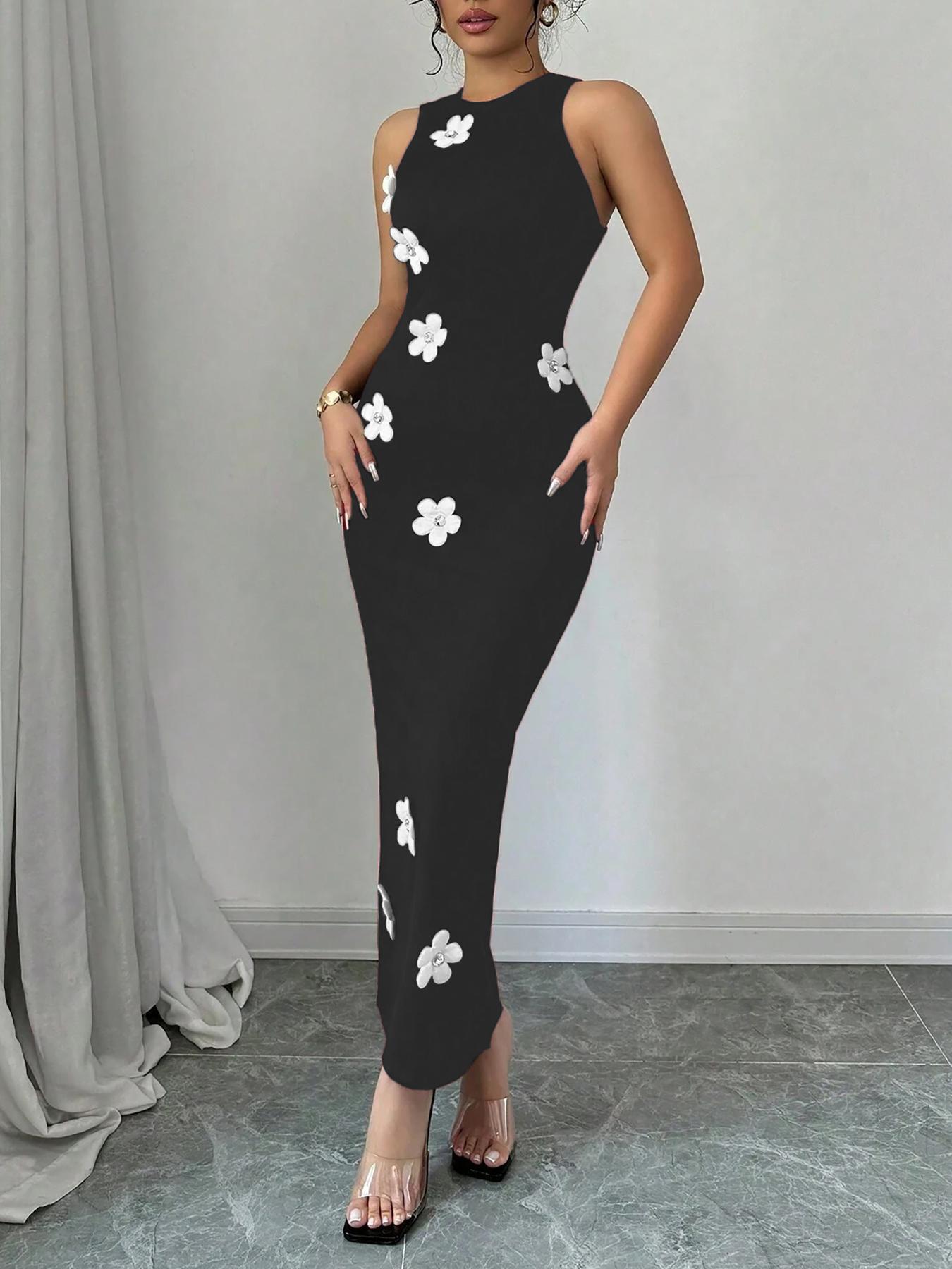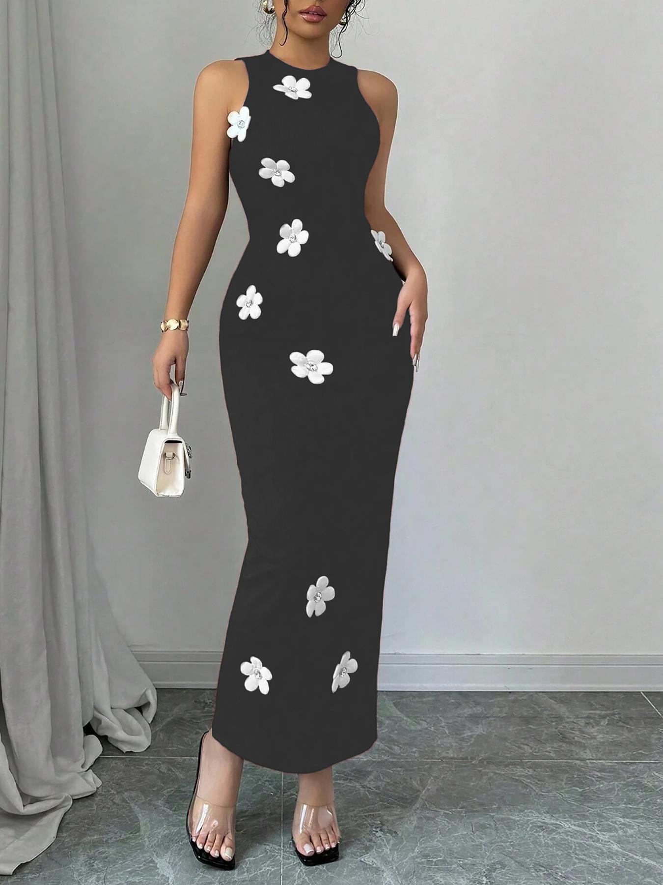 Women's Slim-fit Sleeveless Fashionable Floral Round-neck Dress