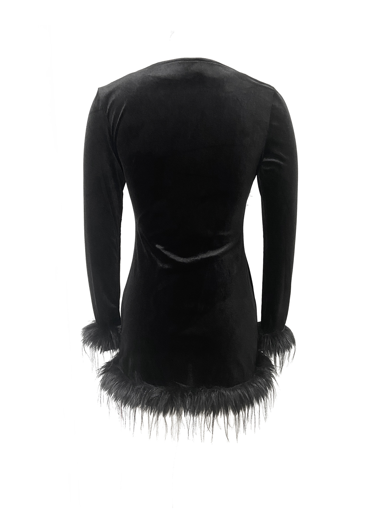 Women's Solid-color Knitted Waist-cinching Long-sleeve Dress