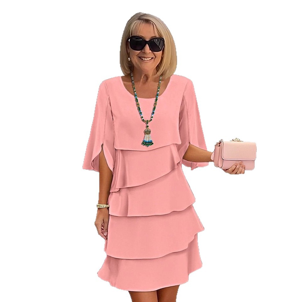 Round Neck Cake Skirt Spliced Dress Women's Clothing