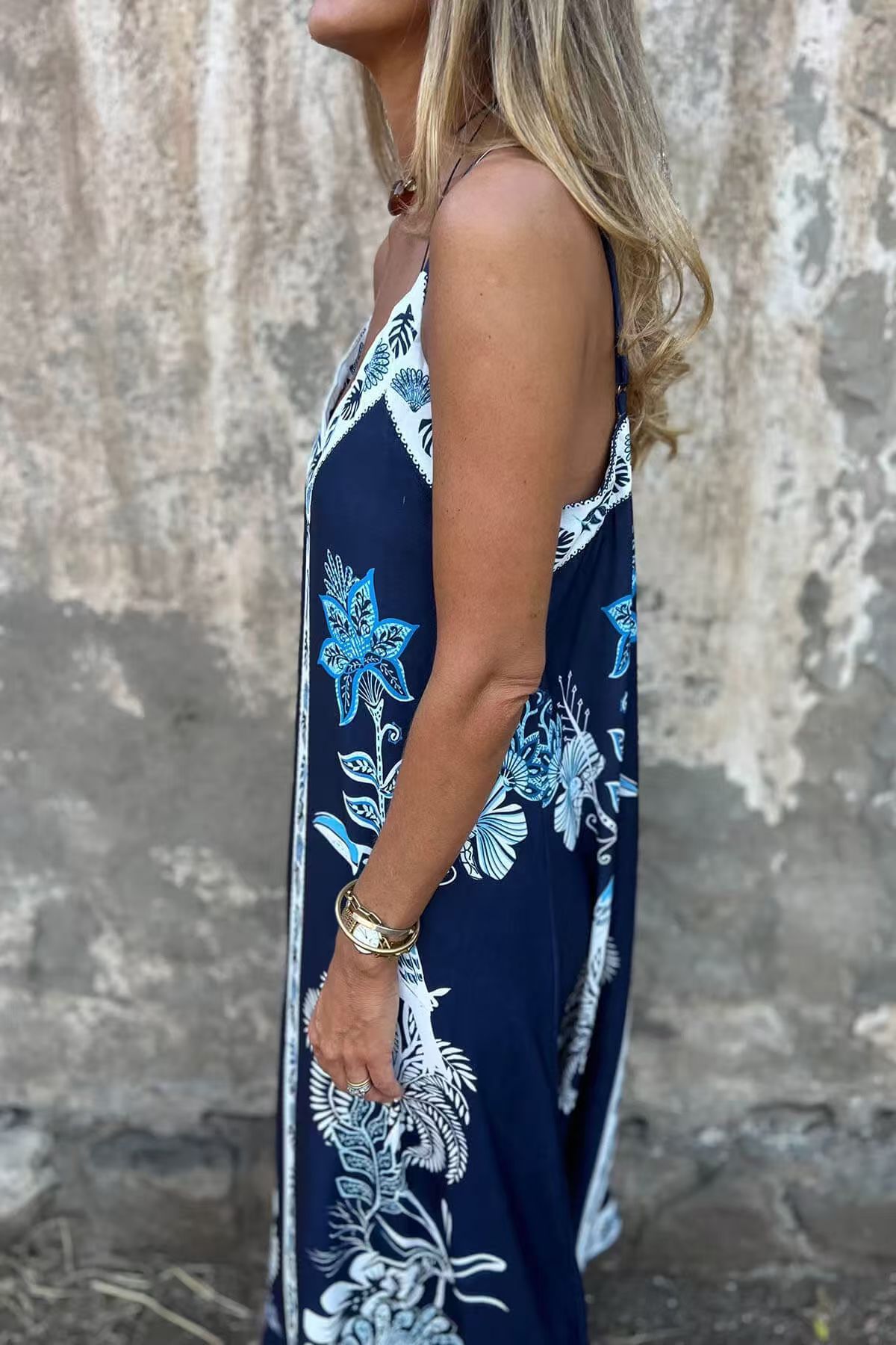 Summer New Arrival European And American Style Retro Minimalist Strap Printed Dress