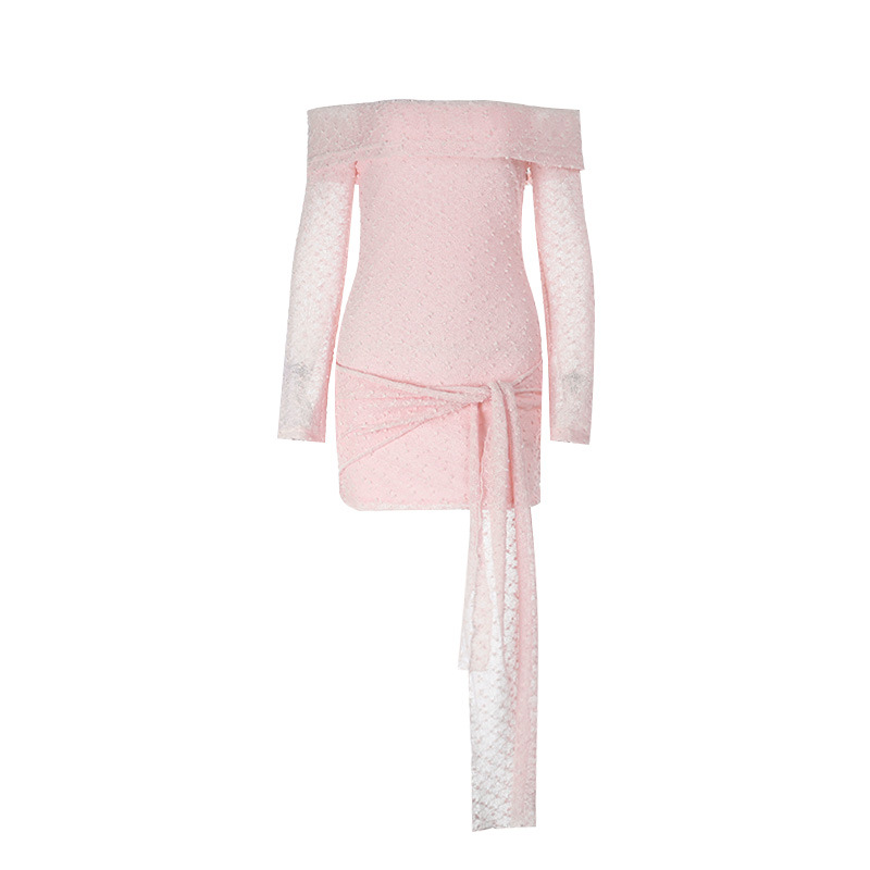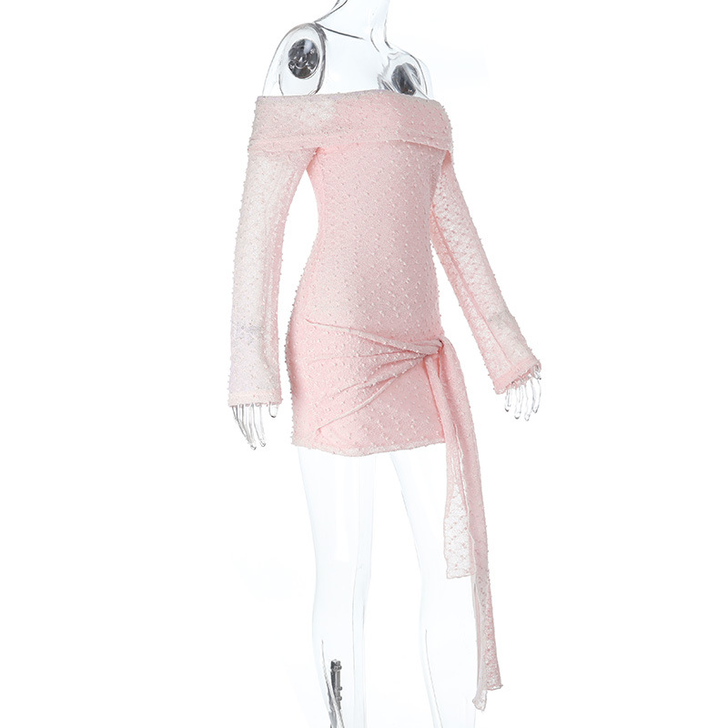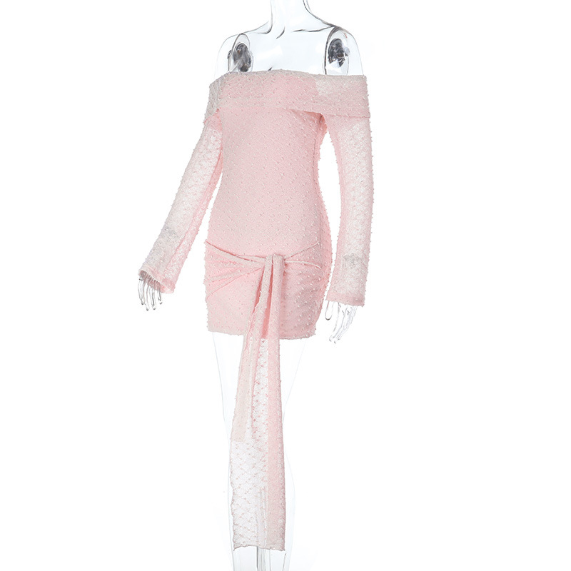 Textured Fabric One-shoulder Tie Dress