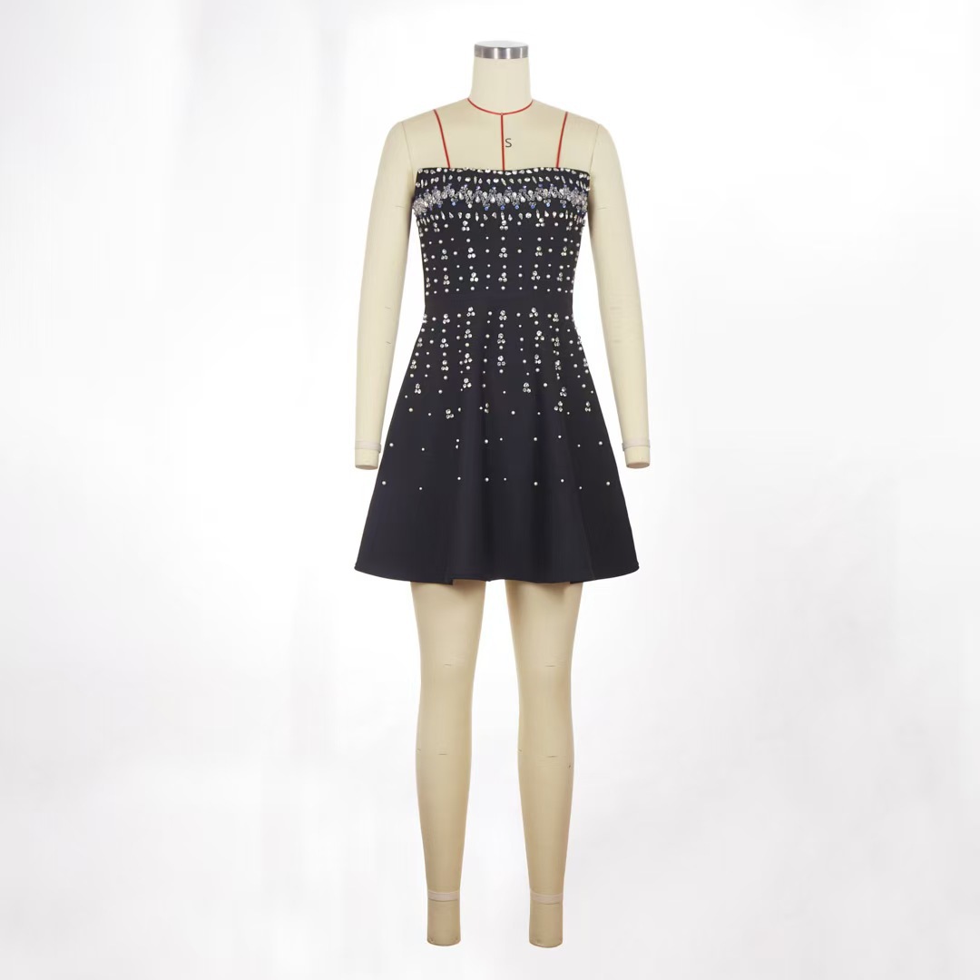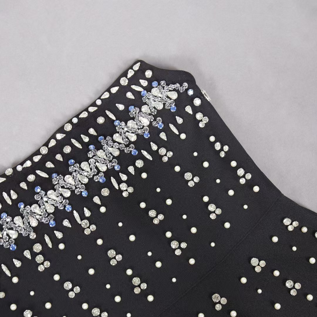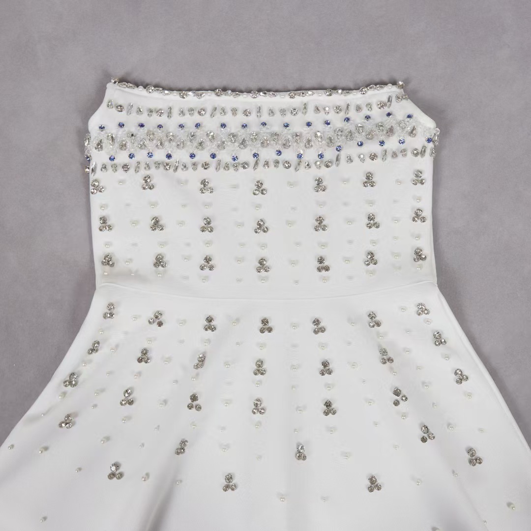 European And American Rhinestone Embellished Strapless Waist-cinching Bandage Dress For Fashionable Evening Banquets
