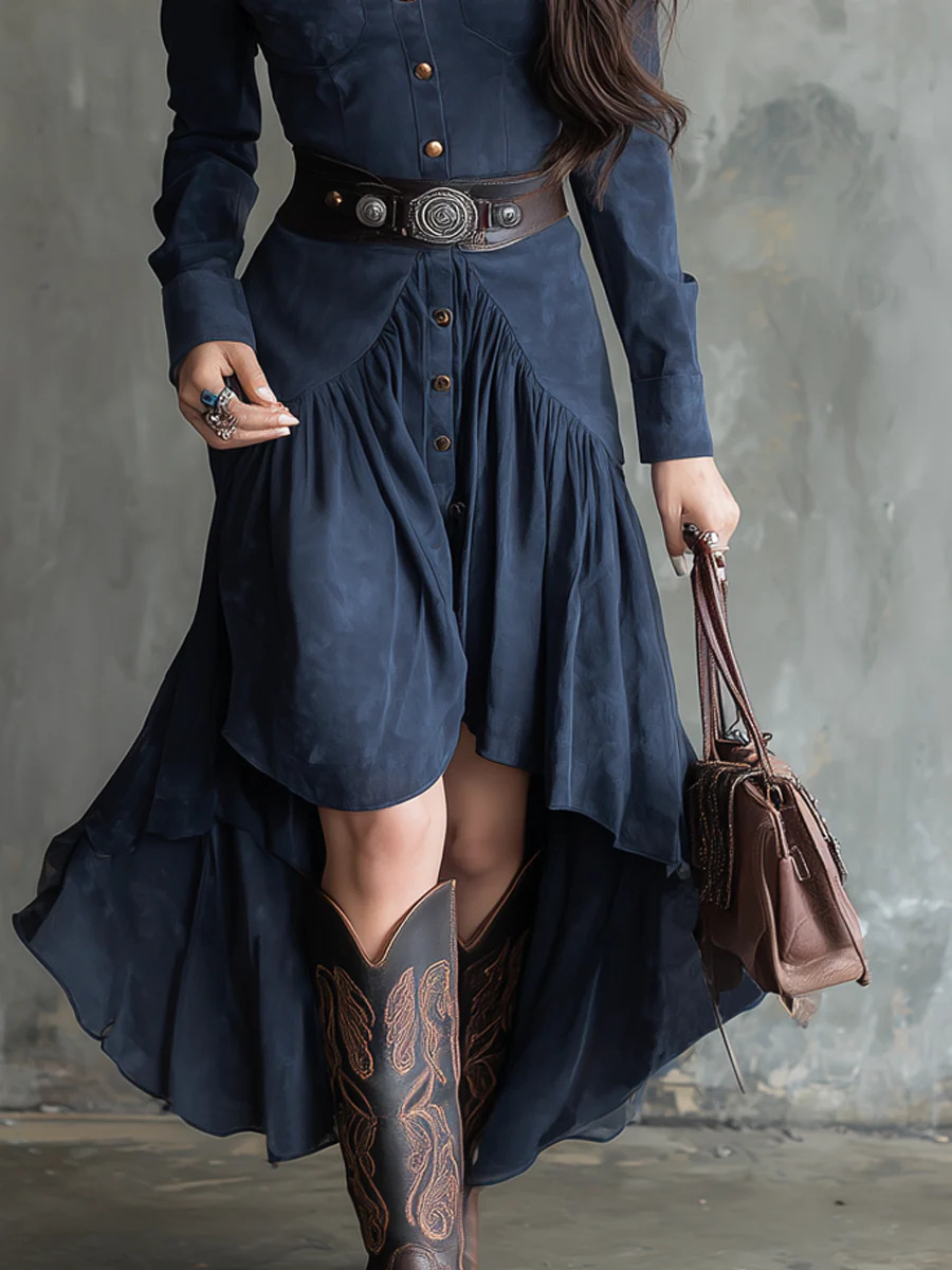 French Suede High-waisted Flare Cake Maxi Skirt With Belt