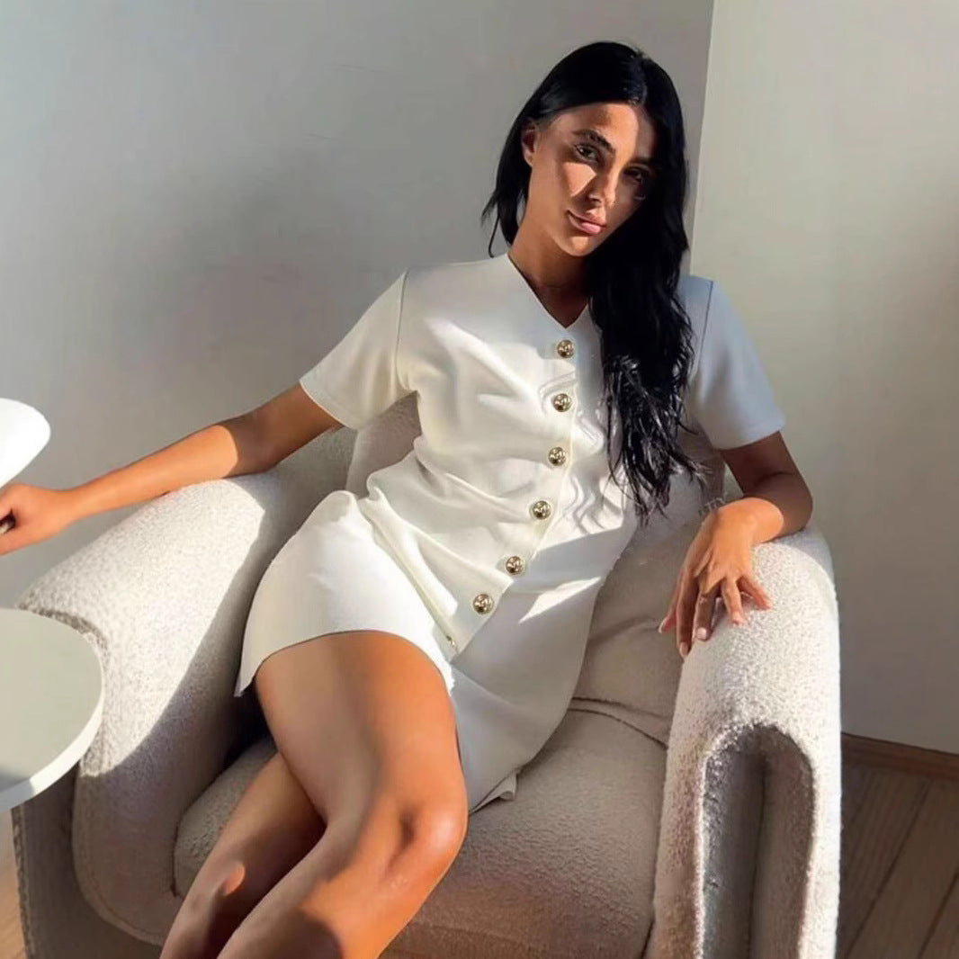 Solid Color Summer Women's Metal Button Knit Dress